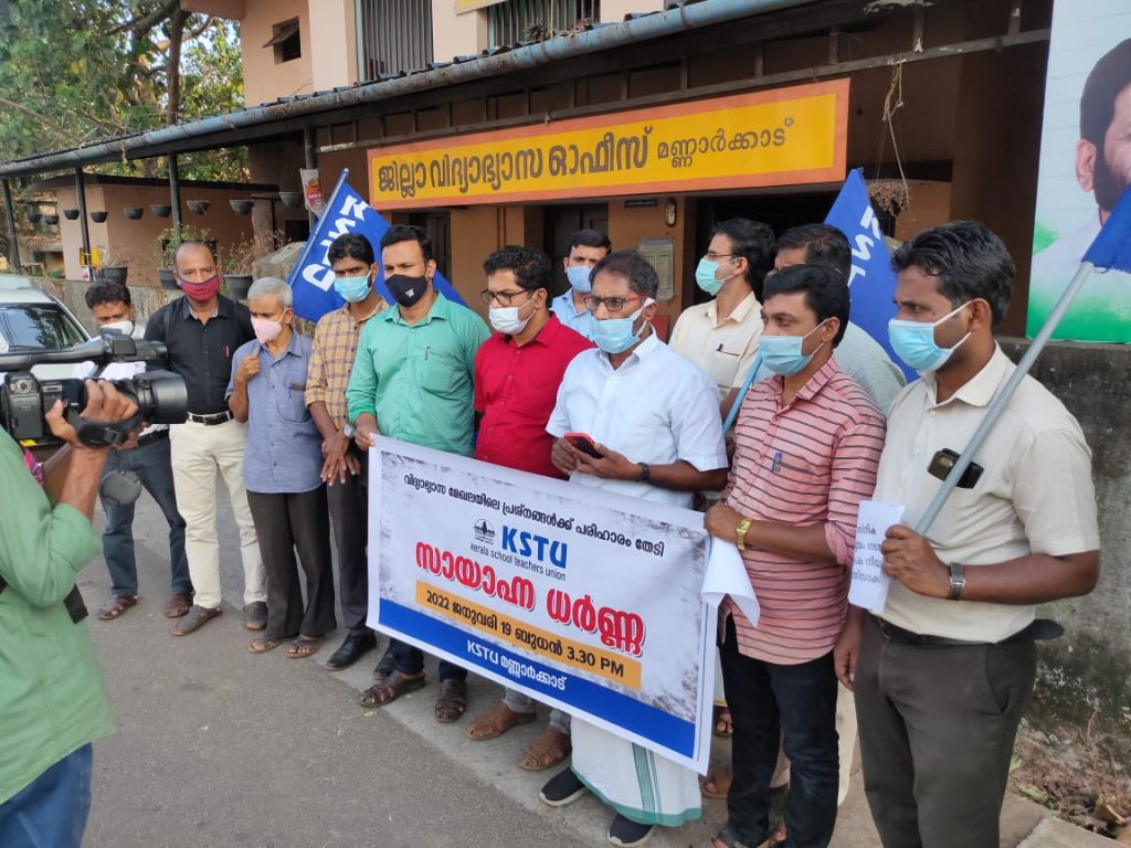 മണ്ണാര്ക്കാട് ഡി.ഇ.ഒ ഓഫീസിന് മുന്നില് കെ.എസ്.ടി.യു സംസ്ഥാന പ്രസിഡണ്ട് കരീം പടുകുണ്ടില് ഉദ്ഘാടനം ചെയ്തു. വിദ്യാഭ്യാസ ജി ല്ലാ സെക്രട്ടറി പി.അന്വര് സാദത്ത് അധ്യക്ഷത വഹിച്ചു.ജില്ലാ വൈ സ് പ്രസിഡണ്ട് കെ.പി.എ. സലീം,ഉപജില്ലാ സെക്രട്ടറി സലീം നാലക ത്ത്,പി.പി.ഹംസ,എന്.ഷാനവാസലി ,കെ.ജി.മണികണ്ഠന്, കെ.അസീ സ്,കെ.വി ഇല്യാസ്,പി.മുഹമ്മദാലി, കെ.യൂനുസ് സലീം ,എം.ടിറി യാസ്,പി.ഹംസ,കെ.എച്ച്.ഫഹദ്,ഫിറോസ്,കെ.മൊയ്തീന്,എം.അസ്ഹറലി,എ.ജലീല്,അക്ബറലി സംസാരിച്ചു.