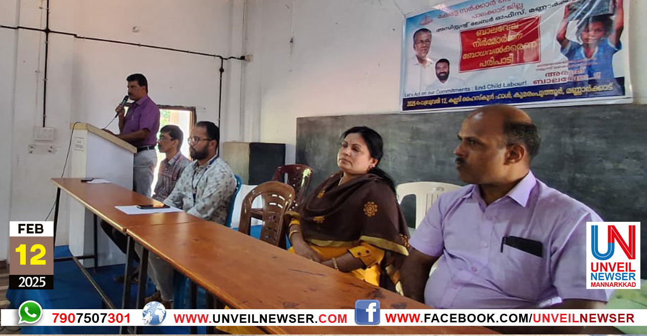 മണ്ണാര്ക്കാട് : ബാലവേല നിര്മാര്ജന പ്രചാരണ പ്രവര്ത്തനങ്ങളുടെ ഭാഗമായി മണ്ണാര് ക്കാട് അസിസ്റ്റന്റ് ലേബര് ഓഫിസിന്റെ നേതൃത്വത്തില് ബാലവേല വിരുദ്ധ ബോധ വല്ക്കരണ പരിപാടി സംഘടിപ്പിച്ചു. കുമരംപുത്തൂര് കല്ലടി ഹയര് സെക്കന്ഡറി സ്കൂ ളില് ബോധവല്ക്കരണ ക്ലാസില് വ്യാപാരി വ്യവസായികള്, ബേക്കേഴ്സ് അസോസി യേഷന്, ഓട്ടോമൊബൈല് വര്ക്ക് ഷോപ്പ് അസോസിയേഷന് അംഗങ്ങള്, വിദ്യാര്ഥി കള് എന്നിവര് പങ്കെടുത്തു. ജില്ലാ ലേബര് ഓഫിസര് കെ.എം സുനില് ഉദ്ഘാടനം ചെ യ്തു. മണ്ണാര്ക്കാട് അസിസ്റ്റന്റ് ലേബര് ഓഫിസര് സി. അഹമ്മദ് ഫായിസ് അധ്യക്ഷനായി. ജില്ലാ ശിശു സംരക്ഷണ യൂണിറ്റ് സൂപ്പര്വൈസര് ആഷ്ലിന് ഷിബു ക്ലാസെടുത്തു. കൊ ഴിഞ്ഞാമ്പാറ അസിസ്റ്റന്റ് ലേബര് ഓഫിസര് കെ.മുബീന, കല്ലടി ഹൈസ്കൂള് ഡെപ്യു ട്ടി ഹെഡ്മിസ്ട്രസ് വി. സബിത, കേരള വ്യാപാരി വ്യവസായി ഏകോപന സമിതി മണ്ണാര് ക്കാട് മണ്ഡലം പ്രസിഡന്റ് രമേഷ് പൂര്ണ്ണിമ, ബേക്കേഴ്സ് അസോസിയേഷന് കേരള മണ്ണാര്ക്കാട് മണ്ഡലം പ്രസിഡന്റ് സിദ്ധീഖ് തുടങ്ങിയവര് സംസാരിച്ചു.
