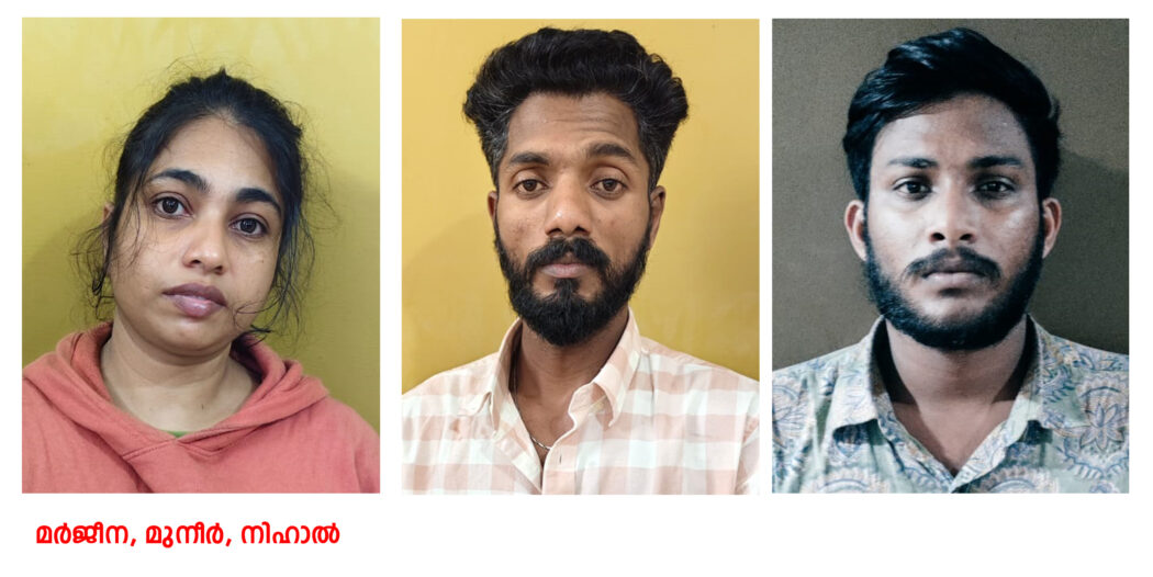 ഇന്നലെ രാവിലെ 10.30നാണ് സംഭവം. ആശുപത്രിപ്പടി ഭാഗത്തുള്ള ലോഡ്ജ് മുറിയില് മയക്കുമരുന്ന് വില്പ്പന നടത്തുന്നുണ്ടെന്ന രഹസ്യവിവരത്തെ തുടര്ന്ന് പൊലിസ് പരിശോധന നടത്തുകയായിരുന്നു. ഈ സമയം മുനീറും മര്ജീനയുമാണ് മുറിയിലു ണ്ടായിരുന്നത്. ഇവര്ക്ക് മുറിയെടുത്തുകൊടുത്തത് നിഹാ ലാണ്. തുടര്ന്ന് നടത്തിയ പരിശോധനയില് ഇവരില് മയക്കുമരുന്നും കഞ്ചാവും പിടികൂടുകയായിരുന്നു. നി ഹാലിനെ മണ്ണാര്ക്കാടിന്റെ മറ്റൊരു ഭാഗത്തുവെച്ചുമാണ് അറസ്റ്റുചെയ്തത്. സ്വന്തം ഉപയോഗത്തിനും വില്പ്പനയ്ക്കുമായാണ് ഇവര് മയക്കുമരുന്ന് എത്തിച്ചതെന്നാണ് പൊലിസ് പറയുന്നത്. സി.ഐ. എം.ബി രാജേഷിന്റെ നിര്ദേശ പ്രകാരം എസ്.ഐ. പി.രാമദാസന്, എ.എസ്.ഐ. സീന, പൊലിസുകാരായ സി.അഭിലാഷ്, സുഭാഷ് എ്ന്നിവര് ചേര്ന്നാണ് പ്രതികളെ പിടികൂടിയത്. മയക്കുമരുന്ന് കൈമാറിയ ആള് ക്കായി പൊലിസ് അന്വേഷണംതുടങ്ങിയിട്ടുണ്ട്.